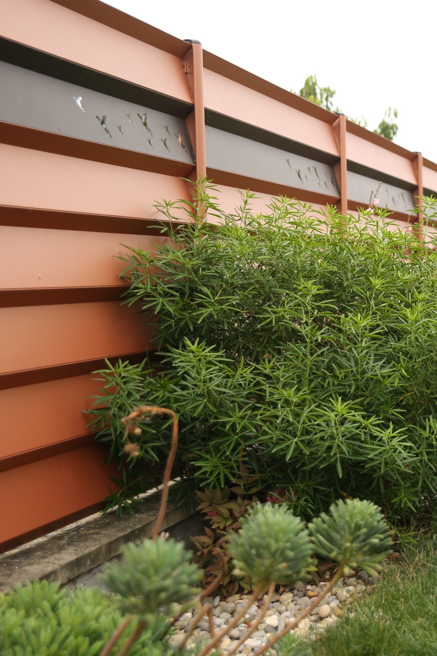 Il existe de nombreuses autres façons de créer un jardin coloré. Les brise-vues, clôtures et portails par exemple, sont des éléments fonctionnels mais aussi esthétiques. Avec la diversité de matières, motifs et coloris aujourd’hui disponibles, vous aurez l’embarras du choix : aluminium, acier corten, bois, PVC, fer forgé…