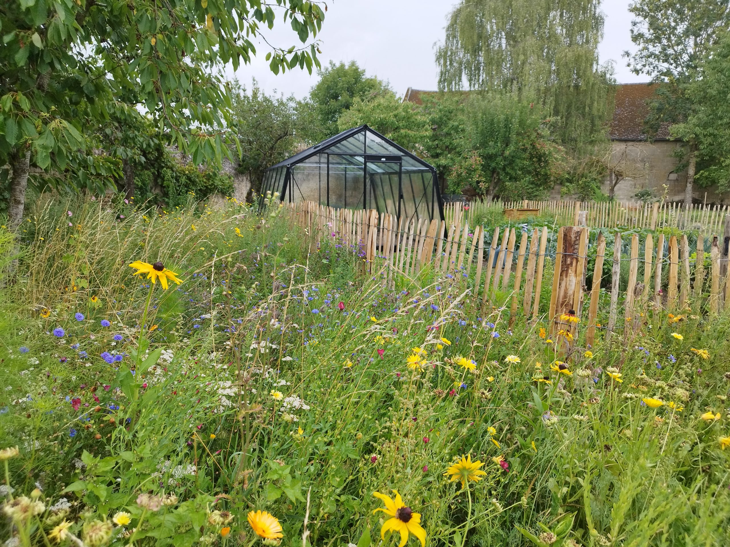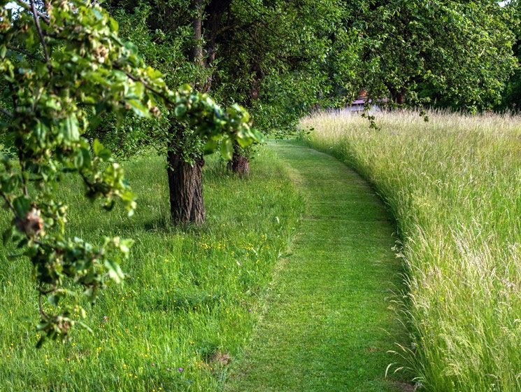 Attention : les prairies fleuries, qu’elles soient naturelles ou semées, sont de la végétation haute qui ne peut pas se piétiner. Elles ne sont donc pas recommandées pour une zone de jeux ou de passage fréquent. Pour créer des allées à travers la prairie fleurie, passez simplement la tondeuse.